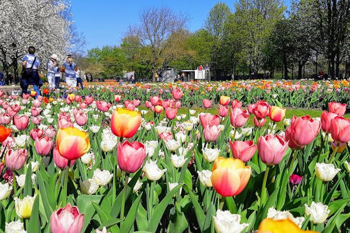 Wenn es einen Frühlingsweg in Berlin gibt, der ganz und gar den Blumen gewidmet ist, dann ist es der Britzer Garten. Jeden April und Mai beherbergt dieser große Park in Neukölln eine der spektakulärsten Tulpenausstellungen Deutschlands – über 80.000 Tulpen in leuchtenden Farben aus Karmesin, Gelb, Violett und Weiß über sanft geschwungene Rasenflächen.